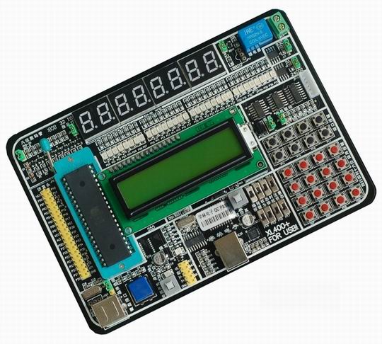 特別設計的燒寫實驗仿真3IN1的公用卡座, CPU插上后即不需要插拔,燒寫仿真等公用串口,使用極其方便簡潔。