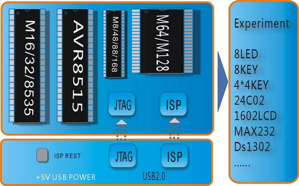 開發(fā)板直接支持:M16,M32,M8535,M8515,M8,M48,M88,M168,M64,M128(以上芯片可直接在板上下載實驗,