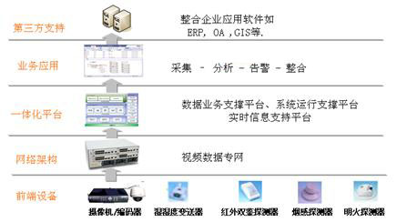 系統由前端設備、網絡架構、一體化應用平臺、業務應用系統等部分組成。
